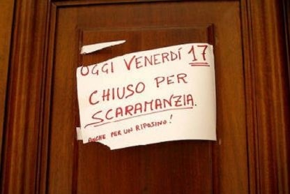 Falls Sie an einem Freitag den siebzehten in Italien Urlaub machen sollten, seien Sie nicht zu verblüfft, falls die Leute abergläubische Sachen machen sollten... Suchen Sie auch nicht mehr im Flugzeug den Sitzplatz Nummer 17, sie wissen jetzt Bescheid.