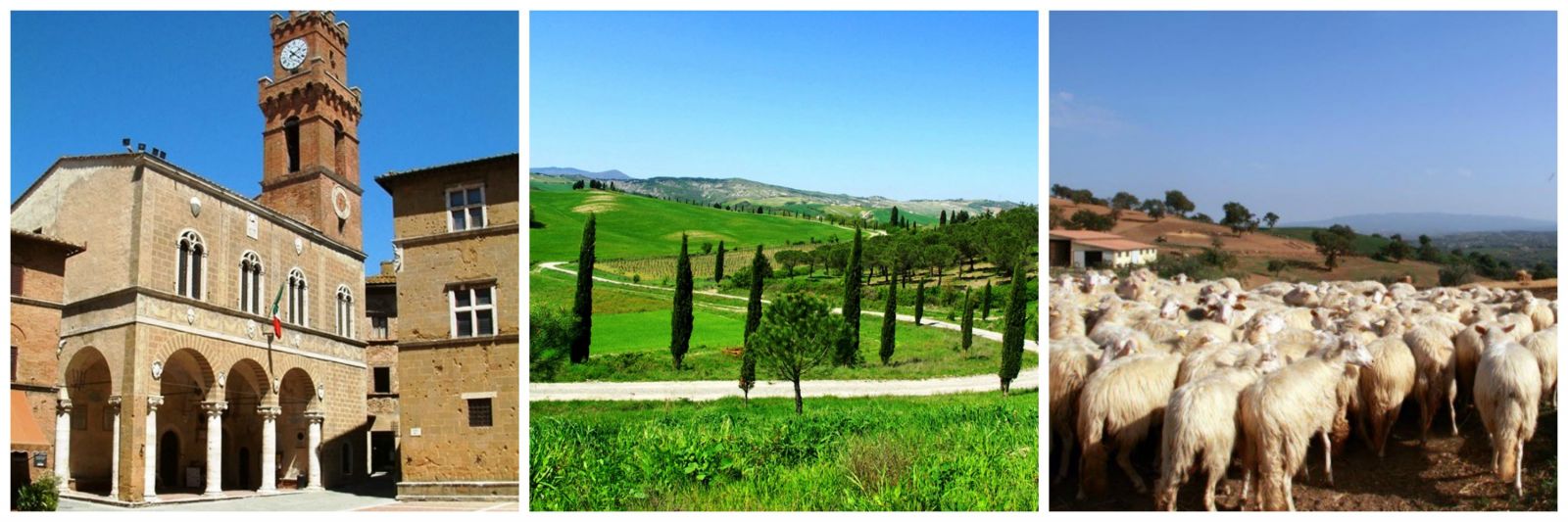 Dieser Käse trägt den Namen der Stadt Pienza, südllich von Siena, nicht weit von Montepulciano entfernt. Hier haben schon die antiken Etrusker diesen Käse produziert und genossen, sowie auch später die antiken Römer. Typisch war es damals den Käse zusammen mit schwarzen Oliven und getrockneten Früchten zu essen. Übrigens, auf italienisch ist das Schaf eine "Pecora".