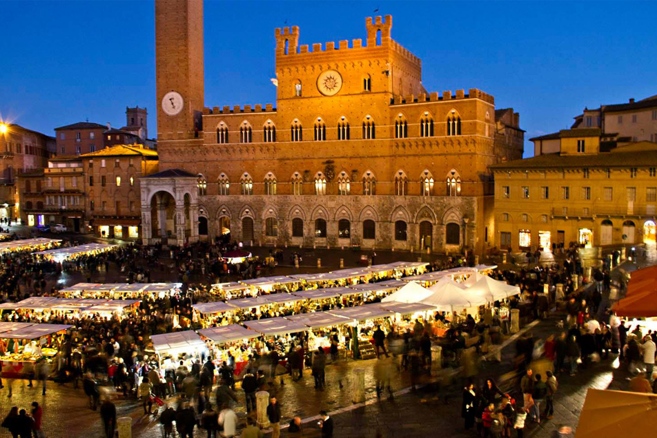 auf dem weltweitbekannten Piazza del Campo, wo jedes Jahr unter anderem der Palio, das berühmte Pferderennen stattfindet, wird am 3., 4. Dezember ein Weihnachtsmarkt organisiert, wo man unter anderem auch die lokalen Leckerbissen einkaufen kann, von den leckeren Schinken und Würsten, über Honig, Panforte und Ricciarelli, sowie auch Trüffelund Wein! Für die Weihnachtsgechenke gibt es eine reiche Auswahl an Keramik, Weihnachtsdekorationen, Schmuck, schale und Hüte, Stoffe bis zu biologischen Kosmetikprodukte.