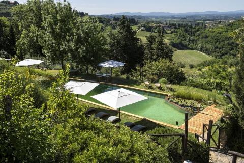 Das Anwesen verfügt über einen einzigartigen natürlichen Swimmingpool mit spektakulärer Aussicht auf die umliegenden Chianti-Hügel. Das Wasser wird mit einem natürlichen Biofilter gereinigt, es werden keine chemischen Substanzen verwendet. Die Stromerzeugung erfolgt über eine Anlage mit Solarpaneelen. Gäste mit einem Elektroauto können das Auto kostenlos auf dem eigenen Parkplatz aufladen, wo 5 Ladestationen zur Verfügung stehen. Das Anwesen mit insgesamt etwa 6 Hektar Land produziert Bio-Olivenöl, Rot- und Roséweine sowie Honig. Zum Frühstück genießen Sie frische Produkte von Bio-Bauernhöfen aus der Umgebung.