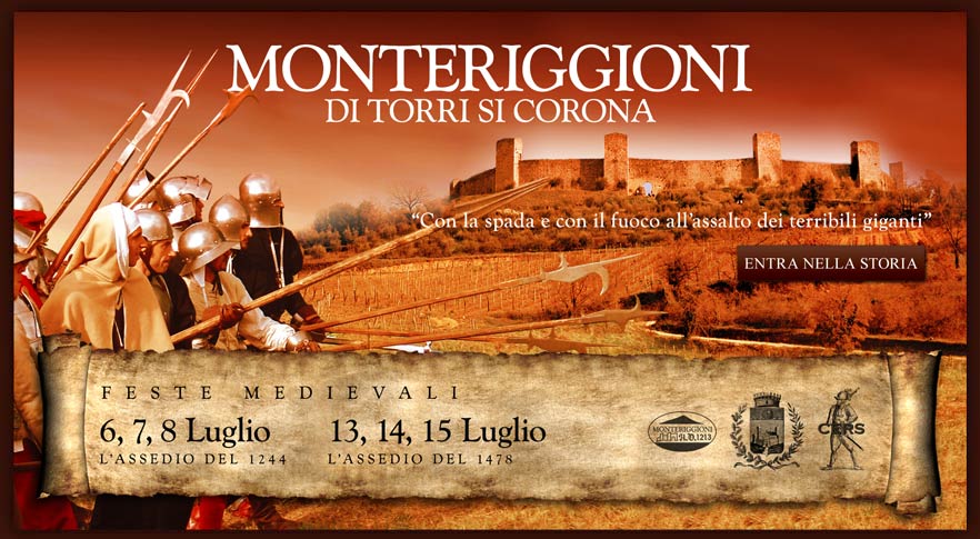 Monteriggioni war einst ein Vorposten von Siena und ist mit seinen Wehrtürmen immernoch vollkommend erhalten. Sogar der Vater der italienischen Sprache, Dante Alighieri erwähnt diesen Ort in seiner „Göttlichen Kommödie“. Dieses Jahr, bzw. 2018 wird das „Mittelalterliche Fest“ in Monteriggioni, das 28. mal durchgeführt und gehört somit zu den ältesten Italiens. Am 5-6-7-8 und 13-14-15 Juli sind Sie alle eingeladen, durch das Stadttor die Burg zu erreichen und eine einzigartige Erfahrung zu erleben. Kultur, Vergnügen, Musik, Tanz, Fröhlichkeit und viele Vorstellungen/Schauspiele machen Monteriggioni zu mittelalterlichen Zeiten wieder lebendig. Die damaligen Handwerke des 13. und 14. Jahrhunderts werden vorgestellt, Spiele für die Kinder organisiert und wer möchte kommt direkt auch passend angezogen. Ein fantastisches Ereignis mit einer einzigartigen Kulisse.