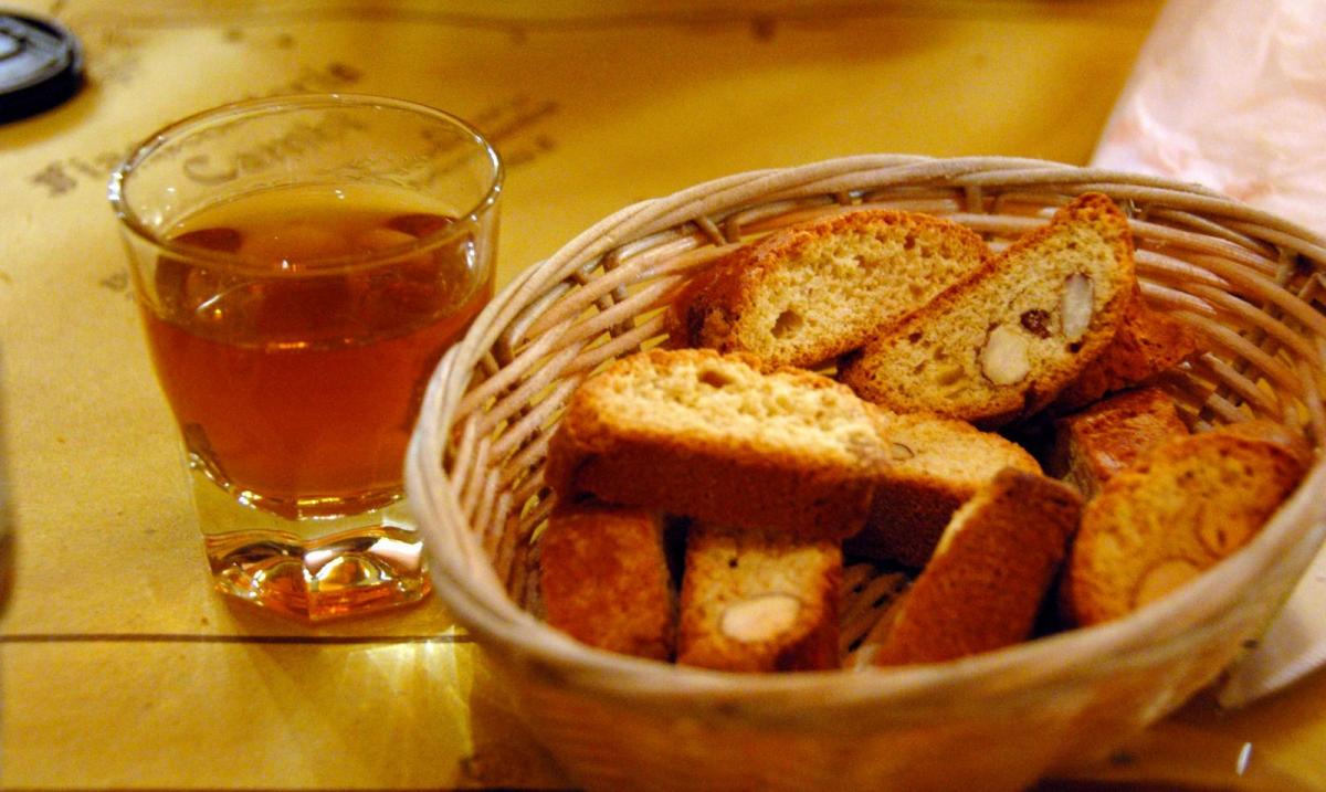 Für eine Kleinigkeit zwischendurch ist die toskanische Pizza zu empfehlen, welche normalerweise recht dümm und mit „nur wenig drauf“ überall zu finden ist. Wer es gerne süß mag, wird sich natürlich in einer der zahlreichen Gelaterias (Eisdielen) über die große Auswahl an Eissorten freuen. Sehr lecker sind auch die schlickten toskanischen Kuchen wie „Torta della Nonna„, ein Mübrbeteigkuchen mit Vanillecreme und Pinienkernen, „Torta coi Bischeri„, auch aus Mürbeteig, aber mit Reis, Schokolade, Rosinen, kandierte Früchte und Pinienkernen gefüllt. Weltweit bekannt sind die „Cantuccini“ aus Prato, trockene Mandelkekse die gerne in den „Vin Santo“ eingetunkt werden und auch die „Ricciarelli“ aus Siena, Mandelpaste-Kekse mit Puderzucker. In Lamporecchio macht man die „Brigidini“ , ganz feine Anis-Waffeln. Natürlich ist lecker auch ein „Bombolone„, ein mit Schokolade oder Marmelade gefüllter Krapfen.