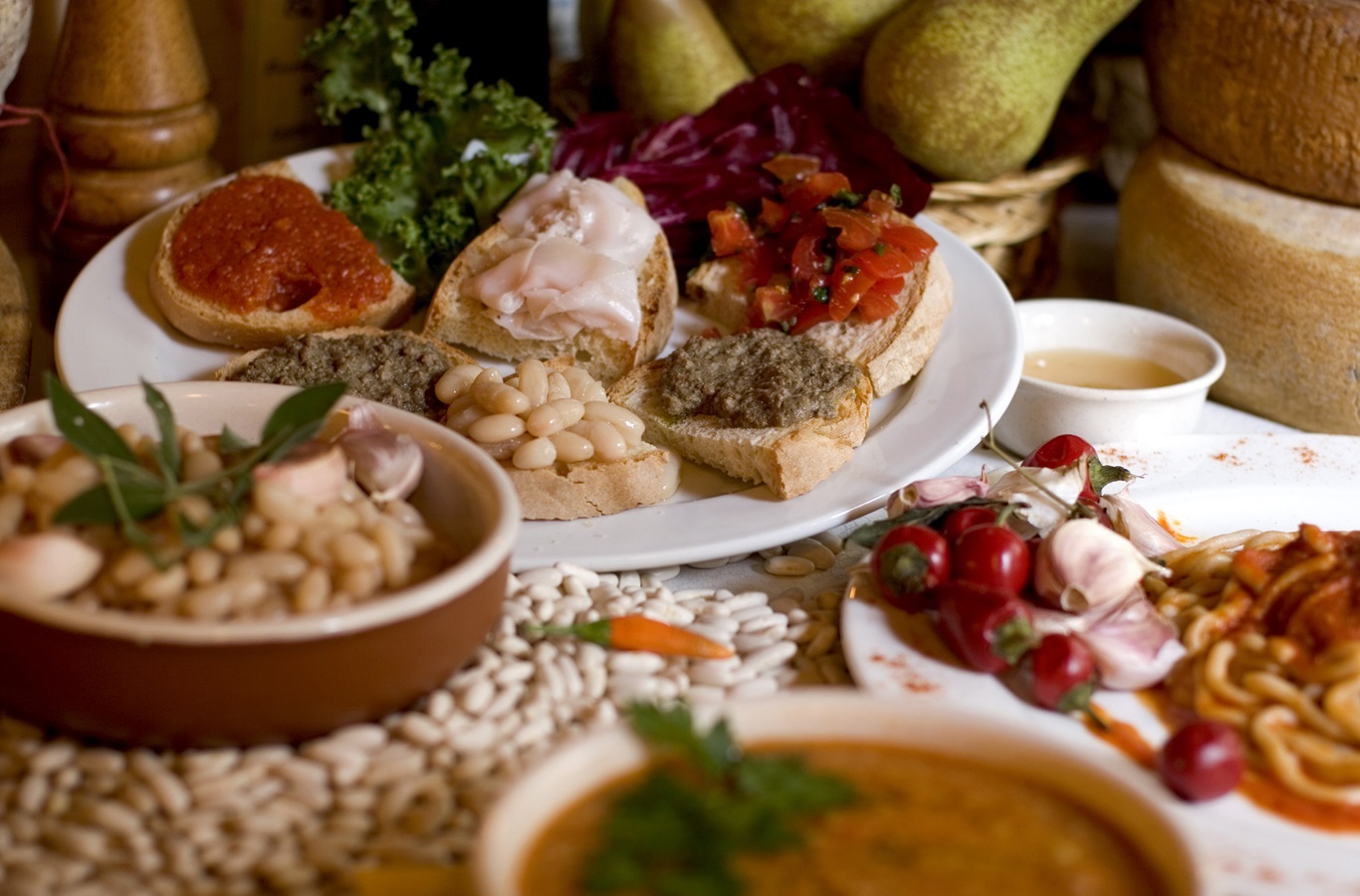 Neben der schönen Natur und den vielen kulturellen Schätzen ist die Toskana auch für ihre exquisite Gastronomie bekannt, die aufgrund ihres bäuerlichen Ursprungs noch heute als bodenständig, nahrhaft und ideenreich zu bezeichnen ist. Neben Fleisch und Brot sind es vor allem Gemüse und Gewürze aus der Region, die der toskanischen Küche einen unverwechselbaren Akzent verleihen und in den Küstengebieten natürlich der Fisch. Die meisten Rezepte sind besonder einfach und schlicht, bzw. müssen die Zutaten von höchster Qualität sein, um deren Geschmack tatsächlich genießen zu können. Statt vielen Soßen, gehört meisten nur ein „filo d´olio“ (auf deutsch ein Faden Öl), natürlich Extra Vergine am Ende auf die Gerichte.
