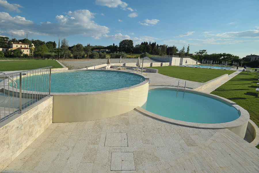 Casciana Terme ist eine charmante kleine mittelalterliche Ortschaft und ist vor Allem bekannt für die natürliche Quelle mit einer konstanten Temperatur von 37° C. Das Thermalwasser von Casciana ist reich an Bikarbonat, Sulfat und Kalzium und wird als das gesundeste Thermalwasser Italiens betrachtet und ist bekannt für die außergewöhnlichen therapeutischen Eigenschaften, vor Allem gegen Entzündungen und Schmerzen, Herzerkrankungen und Atemwegleiden. Schon Matilde di Canossa kam hier baden und so wird der Ort auch die „Thermal-Perle Italiens“ genannt. Die Schwimmbecken sind im Inneren mit einem Hallenbad, welches vorwiegend für Rehabilitation genutzt wird, sowie auch außen befindet sich ein 500qm großes Freibad, mit ständig frischem Thermalwasser, einer Tiefe von 1,30m und einem schönen Park, wo man sich auch auf die Wiese, oder die Ligestühle legen kann. Ganz besonders faszinierend ist der „Percorso acquatico di Terme Villa Borri“, ein Thermalfluss, der im Freien zu einem alten Bauernhof fließt.