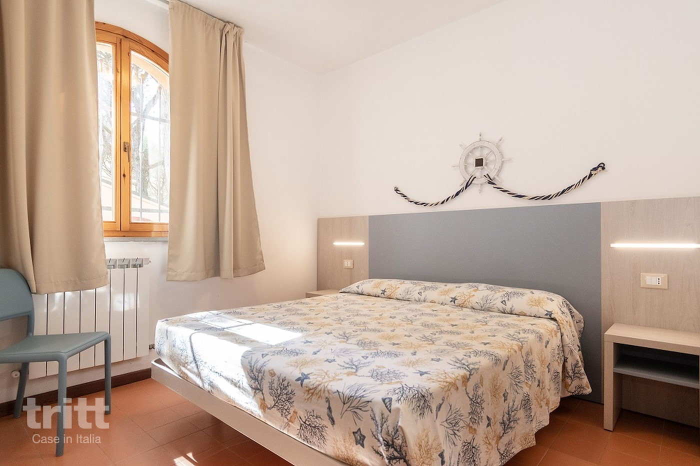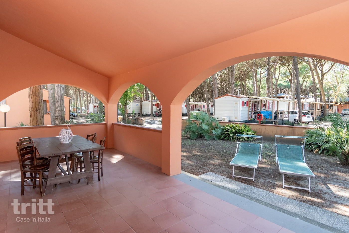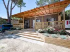 Bungalow ist eine der geräumigsten Unterkünfte des Campingplatzes und bietet mit etwa 70 m² viel Wohnraum für 6 Personen, mit der Möglichkeit, ein zusätzliches Bett für eine siebte Person zu stellen. Der helle, offene Wohnbereich besteht aus einer voll ausgestatteten Kochnische mit Mikrowelle, einem Esstisch mit Stühlen, einem bequemen Sitzbereich und einem Fernseher. Es gibt ein Doppelzimmer und zwei Schlafzimmer mit jeweils zwei Einzelbetten. Außerdem gibt es zwei Badezimmer mit Dusche und Bidet. Draußen ist die große, überdachte Terrasse mit Tisch und Stühlen ein schöner Ort, um gemeinsam zu essen oder zu entspannen, mit Blick auf die Pineta und die umliegenden Unterkünfte. Klimaanlage und Heizung sorgen für einen angenehmen Aufenthalt während der gesamten Saison.