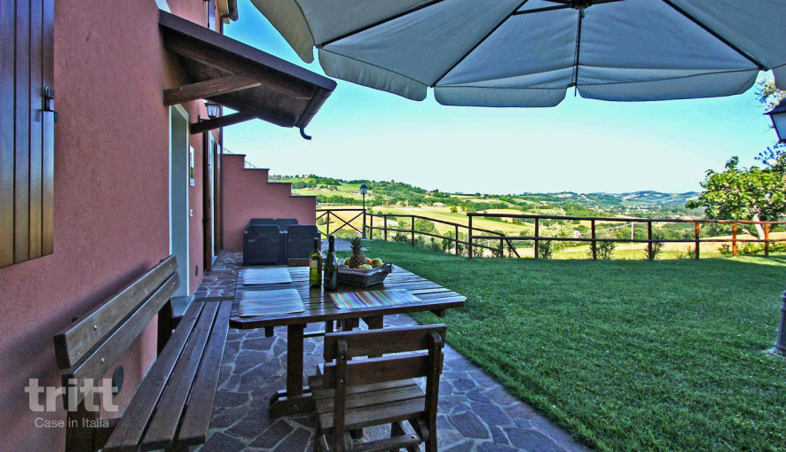 Eine attraktive Wohnung für 4 Personen befindet sich in einem ruhigen, grünen Gebiet mit Blick auf Olivenhaine und sanfte Hügel. Im großzügigen Garten kann man am Pool mit Whirlpool entspannen, verschiedene Sitzbereiche genießen und abends einen schönen Grillabend genießen. Mit den Stränden und dem lebhaften Pesaro, das nur eine kurze Autofahrt entfernt ist, ist diese Residenz eine ideale Kombination aus Ruhe, Natur sowie Ausflügen an die Küste und Kultur.