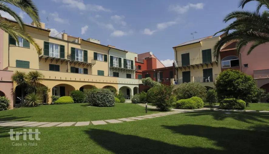 An der wunderschönen ligurischen Küste, zwischen Meer und Hügeln, liegt diese kleine Ferienanlage versteckt in einem grünen Garten voller Blumen und Palmen. Die farbenfrohen Gebäude strahlen mediterranen Charme aus und liegen nur wenige Gehminuten vom Strand und dem lebhaften Zentrum von Loano entfernt. Hier genießen Sie Ruhe, Sonne und das echte italienische Leben im Freien.