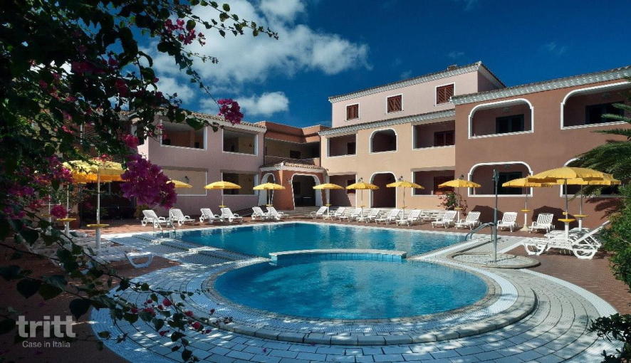 Die Wohnung bietet Platz für 3 Personen und befindet sich im Erdgeschoss oder im ersten Stock. Sie besteht aus einem geräumigen Wohn- und Schlafbereich mit einem Doppelbett oder zwei Einzelbetten. Das Badezimmer verfügt über eine Dusche oder Badewanne. Die Küchenzeile verfügt über einen Ofen, eine Mikrowelle und einen Kühlschrank, ideal für einfache Mahlzeiten. Ein zusätzliches drittes (Kinder-)Bett ist gegen Gebühr möglich. Draußen gehört ein Balkon oder eine Terrasse mit Sitzgelegenheiten zur Wohnung, ein schöner Ort zum Entspannen draußen. Die Residenz verfügt über ein Schwimmbecken mit separatem Kinderbecken, umgeben von einer Sonnenterrasse mit Sonnenbänken und Sonnenschirmen. Außerdem gibt es eine Bar und einen Waschraum für die allgemeine Nutzung. Geschäfte, eine Bäckerei und ein Restaurant sind fußläufig erreichbar, und der Strand von Cala Liberotto ist in kurzer Zeit erreichbar.