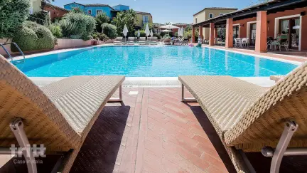 Dieses Ferienhaus besteht aus 27 hellen Wohnungen im sardischen Stil, die um ein Schwimmbecken mit Sonnenterrasse herum gebaut sind. Außerdem gibt es einen kleinen Anbau mit 5 Wohnungen und einem eigenen privaten Schwimmbad. Die Apartments sind komfortabel möbliert und verfügen über Klimaanlage, WLAN, eine ordentliche Küche sowie eine private Terrasse oder einen Balkon. Es gibt Varianten mit 1 oder 2 Schlafzimmern, geeignet für 2 bis 6 Personen. Kinder werden sich hier dank des Spielplatzes im Garten und des separaten Kinderbeckens sofort zu Hause fühlen. Die Bar ist das gemütliche Herz des Komplexes, ideal zum Frühstück, einem Espresso oder einem Aperitivo am Ende des Tages.