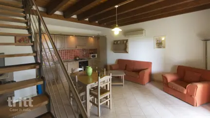 Die Wohnung für 6 Personen (4+2) ist ein kleines sardisches Cottage, das sich über das Grundstück erstreckt und eine Veranda oder Terrasse mit Gartenmöbeln besitzt. Das Ferienhaus bietet viel Platz und befindet sich entweder im Erdgeschoss oder verteilt sich auf zwei Stockwerke. Im Erdgeschoss gibt es ein helles Wohnzimmer mit einem Doppelsofa und einer Küchenfläche, die vollständig ausgestattet ist mit Ofen, Herd, Mikrowelle, Kühlschrank, Gefriertruhe, Geschirrspüler, Wasserkocher und Toaster. Im Obergeschoss befinden sich ein Schlafzimmer mit einem Doppelbett und ein zweites Schlafzimmer mit zwei Einzelbetten. Das Badezimmer ist mit Dusche, Bidet, Waschmaschine und Haartrockner ausgestattet. Der gesamte Komplex bietet eine entspannte Urlaubsatmosphäre mit 2 Schwimmbädern, Jacuzzi, Sonnenliege und Sonnenschirmen. Das Anwesen verfügt über ein eigenes Restaurant, das saisonale Gerichte aus der Region serviert, und für Kinder gibt es einen kleinen Bauernhof mit Tieren. Wer mehr Privatsphäre möchte, kann sich für eines der freistehenden Häuser auf dem Grundstück entscheiden.