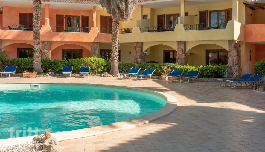 Diese Wohnung ist für zwei Personen geeignet und befindet sich im Erdgeschoss oder im Erdgeschoss einer kleinen Wohnung im sardischen Stil. Im Inneren ist die Unterkunft praktisch und komfortabel eingerichtet mit einem Wohnzimmer mit Doppelsofa, TV und Essbereich, einer Küchenzeile mit Mikrowelle sowie einem Badezimmer mit Dusche, Toilette und Haartrockner. Draußen haben Sie Ihre eigene Terrasse oder einen Balkon mit Sitzgelegenheiten. Klimaanlage und WLAN sind vorhanden, und ein Bügeleisen und ein Bügelbrett sind auf Anfrage verfügbar. Ein Kinderbett und/oder ein Hochstuhl stehen gegen Gebühr zur Verfügung. Die Apartments erstrecken sich in einem großen mediterranen Garten, der zum zentral gelegenen Schwimmbad führt – ein schöner Ort zum Entspannen nach einem Tag am Meer. Es gibt Grillplätze zur gemeinsamen Nutzung und einen kleinen Spielplatz für Kinder. Fahrräder können gemietet werden, um die Gegend zu erkunden.