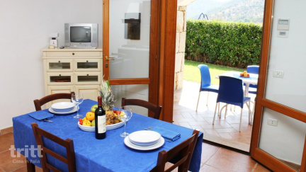 Die Apartments erstrecken sich über einen gepflegten Park mit Schwimmbad, Gärten und einem Spielplatz. Jede Unterkunft verfügt über einen eigenen Eingang und eine Terrasse oder Veranda mit Sitzgelegenheiten, je nach Lage im Erdgeschoss oder im ersten Stock. Im Inneren finden Sie ein helles Wohnzimmer mit Schlafsofa, eine Kochnische mit Herd und Ofen, ein Doppelzimmer und ein Badezimmer mit Dusche. Die frische Einrichtung und das angenehme Layout machen dies zu einer komfortablen Basis für vier Personen.