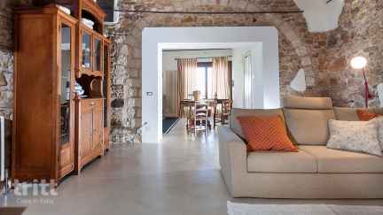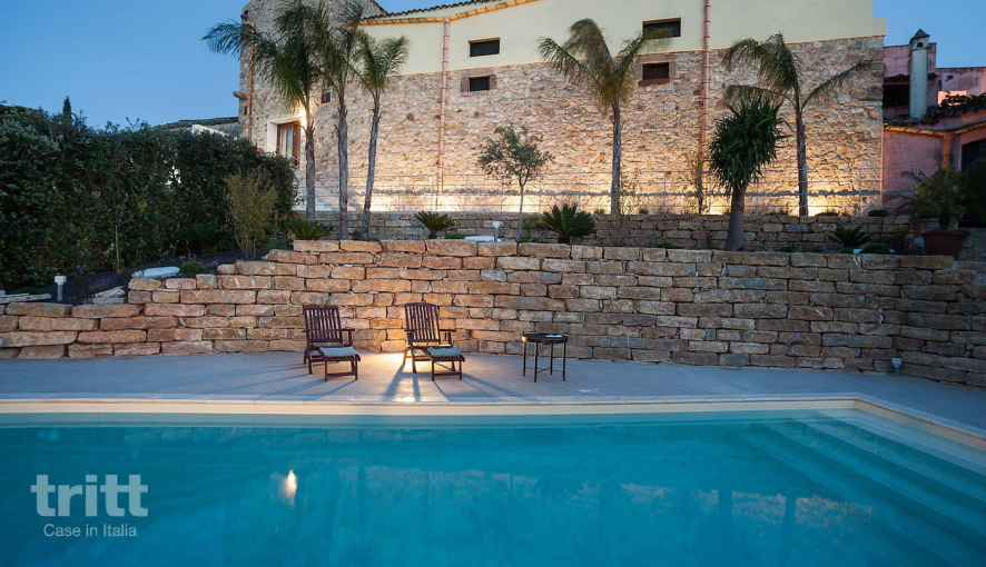 Dieser charaktervolle Ferienhof besteht aus einem kleinen Wohnkomplex um einen zentralen Innenhof. Die Wohnung ist warm und ordentlich möbliert und verfügt über ein schönes Wohnzimmer, eine offene Küche mit modernen Annehmlichkeiten und komfortable Schlafzimmer, die sich über zwei Stockwerke erstrecken. Vom Haus aus können Sie direkt auf die Terrasse treten – ideal für ein ruhiges Frühstück oder ein Glas Wein am Abend. Das gemeinsame Schwimmbad liegt in einem grünen Garten mit Palmen, Sonnenliege und einer Sonnenterrasse und lädt einen zu entspannenden Tagen in der sizilianischen Sonne ein.