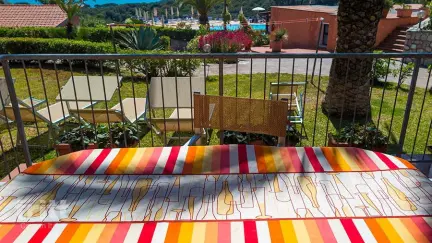 Der familiengeführte Park verfügt über ein großes Panorama-Schwimmbad mit Bar, Tennisplatz, Fußballplatz, Spielplatz und eigenem Strandrestaurant. Die 25 Wohnungen sind wie Doppelhaushälfte über das hügelige Gelände verteilt und bieten jeder Wohnung eine schöne Terrasse und viel Privatsphäre. Von den meisten Terrassen aus kann man das Meer sehen, aber besonders am Pool ist die Aussicht beeindruckend mit dem toskanischen Festland im Hintergrund. Gastgeberin Claudia und ihre Familie heißen sie herzlich willkommen. Tagsüber sitzt sie mit ihrer Mutter hinter der Poolbar, und abends hilft sie ihrem Vater im 1,7 km entfernten Strandrestaurant, das Fisch, Fleisch, Pizzen und Kinderkarten anbietet. Das Gemüse aus dem Gemüsegarten des Vaters wird den Gästen zu einem günstigen Preis verkauft.