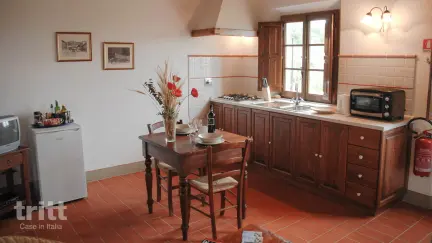 Die Wohnungen sind auf alte Gebäude und Nebengebäude verteilt und bieten Platz für 3 Personen (2+1). Im Inneren ist der Stil schlicht und charakteristisch, mit Wohnbereich und Kochnische mit Herd, Kühlschrank-Gefrierschrank, Mikrowelle, Kaffeemaschine und Esstisch. Das Schlafzimmer verfügt über ein Doppelbett, einen Safe und ein Badezimmer mit Dusche; Ein drittes Bett steht im Wohnzimmer oder im Schlafzimmer. Draußen hat man einen privaten Sitzbereich mit Blick auf die grünen Hügel. In einigen Wohnungen ist Klimaanlage vorhanden und WLAN ist fast überall verfügbar. In der Umgebung finden Sie ein Schwimmbecken mit einer Sonnenterrasse, einen großzügigen Garten mit Spielgeräten und Fahrrädern, um die Gegend zu erkunden. Das Dorf Grassina ist etwa 1 km zu Fuß entfernt, obwohl die Höhenunterschiedsroute etwas Anstrengung erfordert.