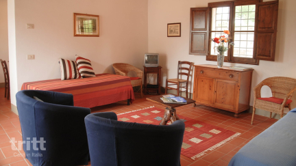 Die Residenz befindet sich auf einem 35 Hektar großen Anwesen mit Olivenhainen, Weinbergen und stattlichen Zypressen. Rund um den Pool finden Sie eine sonnige Terrasse und einen großen Garten, in dem Kinder spielen können, und Fahrräder stehen bereit, um die Umgebung zu erkunden. Die 15 Wohnungen sind zwischen dem Hauptgebäude und einigen Nebengebäuden aufgeteilt und für 2 bis 6 Personen geeignet. Sie haben eine schlichte, charaktervolle Einrichtung mit vielen toskanischen Merkmalen, und die meisten verfügen über Heizung, Satellitenfernsehen, eine Kombination aus Mikrowelle oder Mini-Herd, WLAN und eine Terrasse; Manche haben eine Klimaanlage. In der Wohnung für 2+2 Personen finden Sie einen gemütlichen Wohnbereich mit Terrassentüren nach draußen, eine Küche mit allen grundlegenden Annehmlichkeiten, ein Schlafzimmer mit Doppelbett und ein Badezimmer mit Dusche. Am Fuß des Hügels, etwa 1 km zu Fuß (mit Höhenunterschied), liegt Grassina mit Geschäften, einer Bäckerei, Restaurants und allem, was man für einen entspannten Aufenthalt braucht.