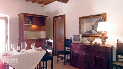 Der Ferienhof besteht aus charaktervollen Wohnungen, die in historischen Bauernhäusern untergebracht sind. Im Inneren schaffen Terrakottaböden und Holzbalken eine warme Atmosphäre, ergänzt durch moderne Annehmlichkeiten wie Klimaanlage und Heizung. Die Gäste haben einen privaten Eingang, einen gemütlichen Wohnbereich und Zugang zu einer gemeinsamen Terrasse. Das panoramische Schwimmbecken lädt Sie zu entspannten Nachmittagen ein, während jeden Morgen ein italienisches Frühstück enthalten ist. Das Anwesen produziert eigene Weine und Olivenöl, das Sie ebenfalls probieren und mit nach Hause nehmen können.