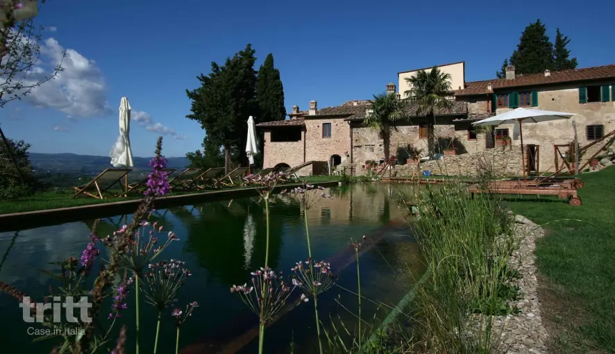 Die Wohnung ist für 4 Personen geeignet, verfügt über einen eigenen Eingang sowie einen privaten Garten mit Terrassen- und Gartenmöbeln. Im Inneren finden Sie ein gemütliches Wohnzimmer mit Sitzecke, Kamin und Satellitenfernsehen, ideal für entspannte Abende. Der Küchenbereich ist modern mit einem Induktionsherd, Ofen, Geschirrspüler, Wasserkocher und Filterkaffeemaschine ausgestattet. Es gibt zwei Schlafzimmer, eines mit einem Doppelbett und eines mit einem Sofa, das in zwei Einzelbetten umgebaut werden kann, geeignet für Kinder. Dank der zwei Badezimmer mit Dusche ist die Wohnung besonders komfortabel. Das Grundstück verfügt über ein einzigartiges, natürliches Schwimmbecken mit spektakulärem Blick auf die umliegenden Chianti-Hügel. Das Wasser wird mit einem natürlichen Biofilter gereinigt, es wird keine chemische Substanz verwendet. Strom wird durch eine Installation mit Solarpanels erzeugt. Gäste mit einem Elektroauto können ihr Auto kostenlos auf dem privaten Parkplatz laden, wo fünf Ladestationen verfügbar sind. Das Anwesen mit insgesamt etwa 6 Hektar Land produziert Olivenöl, Rot- und Roséweine sowie Honig auf biologische Weise. Gäste können das Frühstück genießen, das frische Produkte von Bio-Bauernhöfen in der Umgebung serviert.