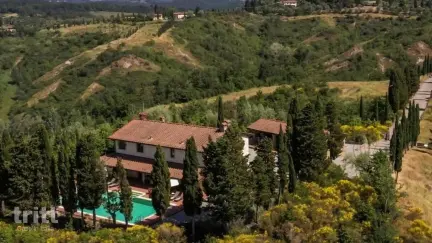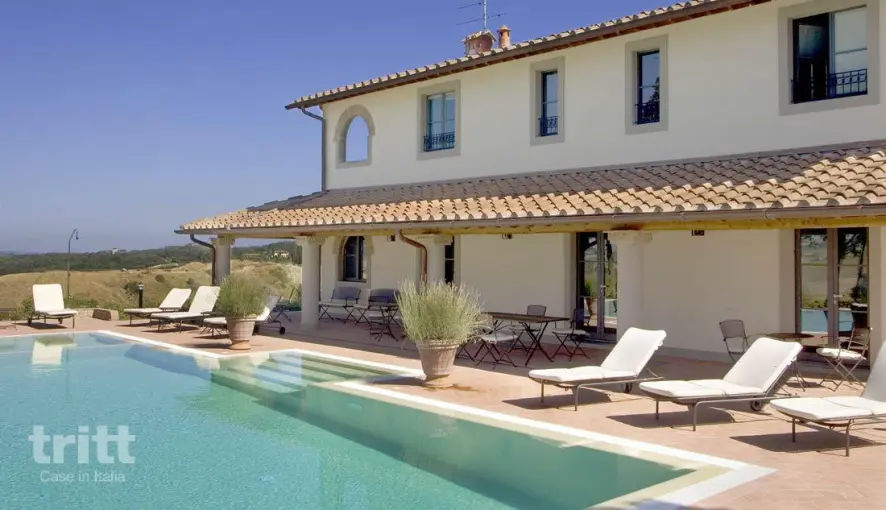 Auf einem Hügel im toskanischen Landesinneren entfaltet sich eine klassische Landschaft aus sanften Hügeln, Zypressen und verstreuten Bauernhöfen. Diese attraktive Villa ist kostenlos und bietet einen Panoramablick, der sofort den ruhigen Charakter der Toskana greifbar macht. Ein Ort, an dem Raum, Komfort und die Natur zusammenkommen.