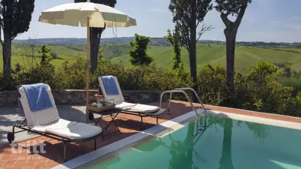 - , auf einem Hügel gelegen, mit spektakulärem Blick auf die toskanische Hanglandschaft
