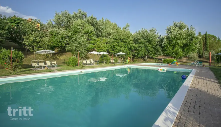 Die Fotos sind unverbindlich; die Einrichtung kann je nach Wohnung geringfügig variieren. Der Salzwasserpool mit Liegestühlen bietet einen herrlichen Blick über die Hügel (Badekappe nicht erforderlich). Von Mai bis September wird ein Frühstücksbuffet angeboten (€) und die Rezeption ist täglich geöffnet. In den Sommermonaten werden oft zusätzliche Aktivitäten organisiert, wie Yoga zwischen den Olivenbäumen, Verkostungen, Picknicks, Kochworkshops oder Aperitivo-Momente, immer vorbehaltlich einer ausreichenden Teilnehmerzahl.