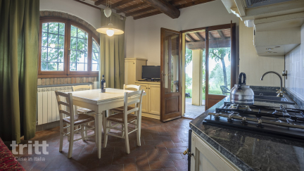 Auf einem ruhigen Hügel direkt unterhalb von Florenz, mitten in der Weinregion Chianti Rufina, liegt ein wunderschönes toskanisches Anwesen mit Blick auf Weinberge, Olivenhaine und sanft hügelige Hügel. Hier wohnen Sie in einer der acht attraktiv restaurierten Wohnungen, in denen der Charme des traditionellen Bauernlebens vollständig bewahrt wurde. Die alte Weinfarm wurde mit großer Sorgfalt und Respekt vor der Geschichte in ein warmes und authentisches Ferienhaus umgewandelt.
