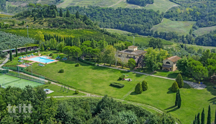 Im Herzen von Chianti, am Ende einer langen Allee aus Zypressen, liegt ein charmantes toskanisches Anwesen, umgeben von sanften Hügeln, Weinbergen, Weizenfeldern, Olivenhainen und kleinen Seen. Die Ferienhäuser strahlen den klassischen toskanischen Stil aus und bieten einen ruhigen Ort, an dem sowohl Familien als auch Paare sich in vollen Zügen entspannen können. Dank der zahlreichen Einrichtungen ist für jeden etwas dabei, von Schwimmen bis zu sportlichen Aktivitäten.