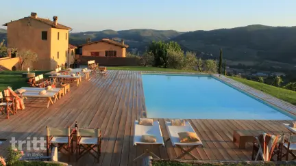 Zwischen den sanften Hügeln südlich von Florenz, im Herzen der Weinregion Chianti Rufina, liegt dieses charmante Agriturismo. Hier erleben Sie das echte toskanische Landleben. Der Hof besteht aus acht attraktiven Wohnungen, jede mit authentischem Charakter und warmer Atmosphäre. Sie bleiben auf einer funktionierenden Weinfarm, die für ihre hervorragenden Rufina-Weine berühmt ist, die teilweise exportiert werden, sowie für das köstliche Olivenöl aus unserer eigenen Pressung. Im Jahr 2007 wurde die historische Weinfarm vollständig restauriert, wobei ihre ursprünglichen Details wie Holzbalken, Natursteinwände und Terrakottaböden erhalten blieben. Man kann hier buchstäblich die Liebe zur Tradition in allem schmecken.