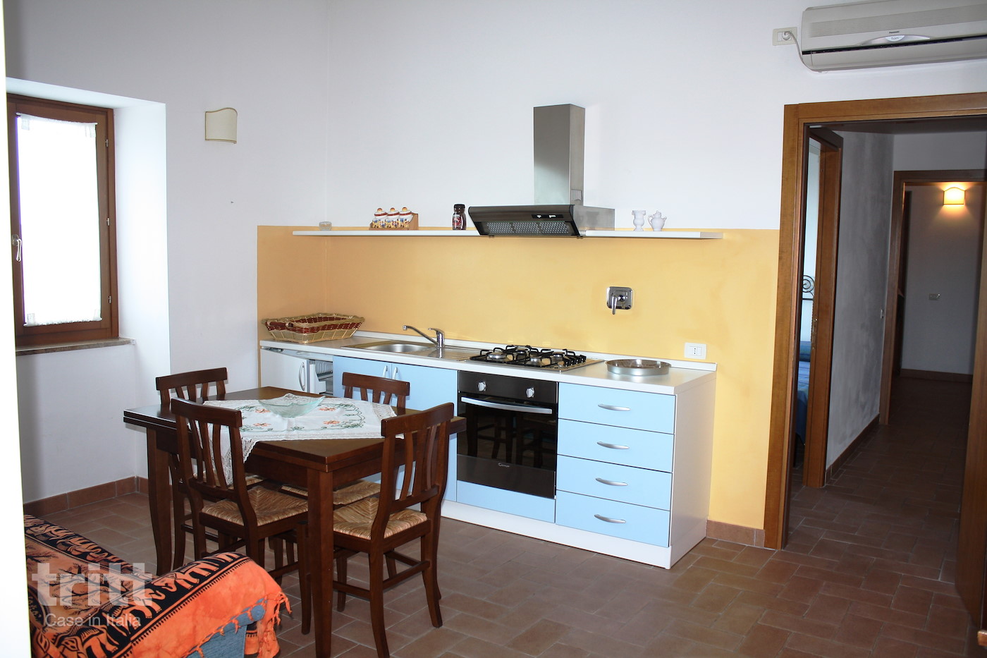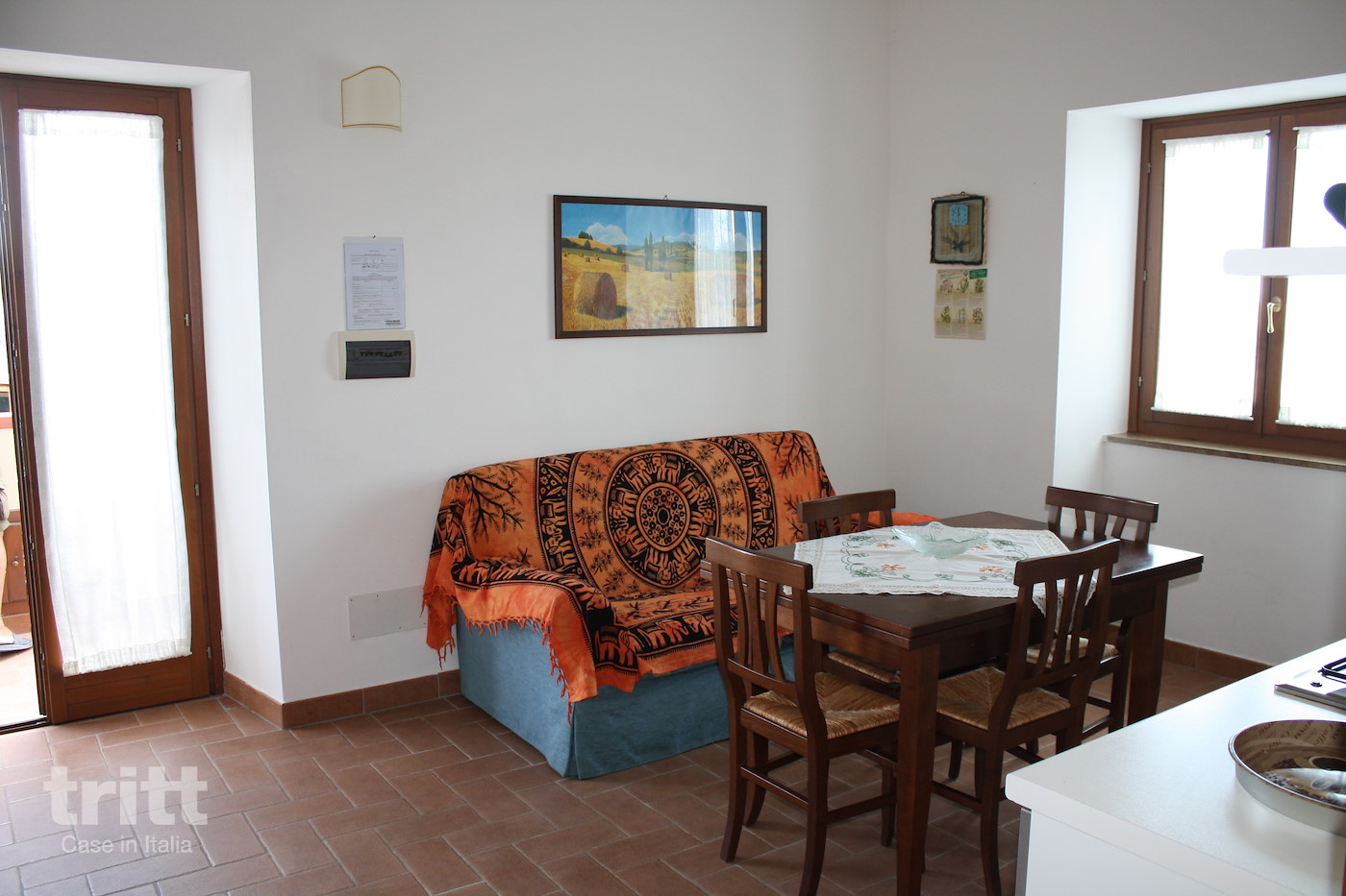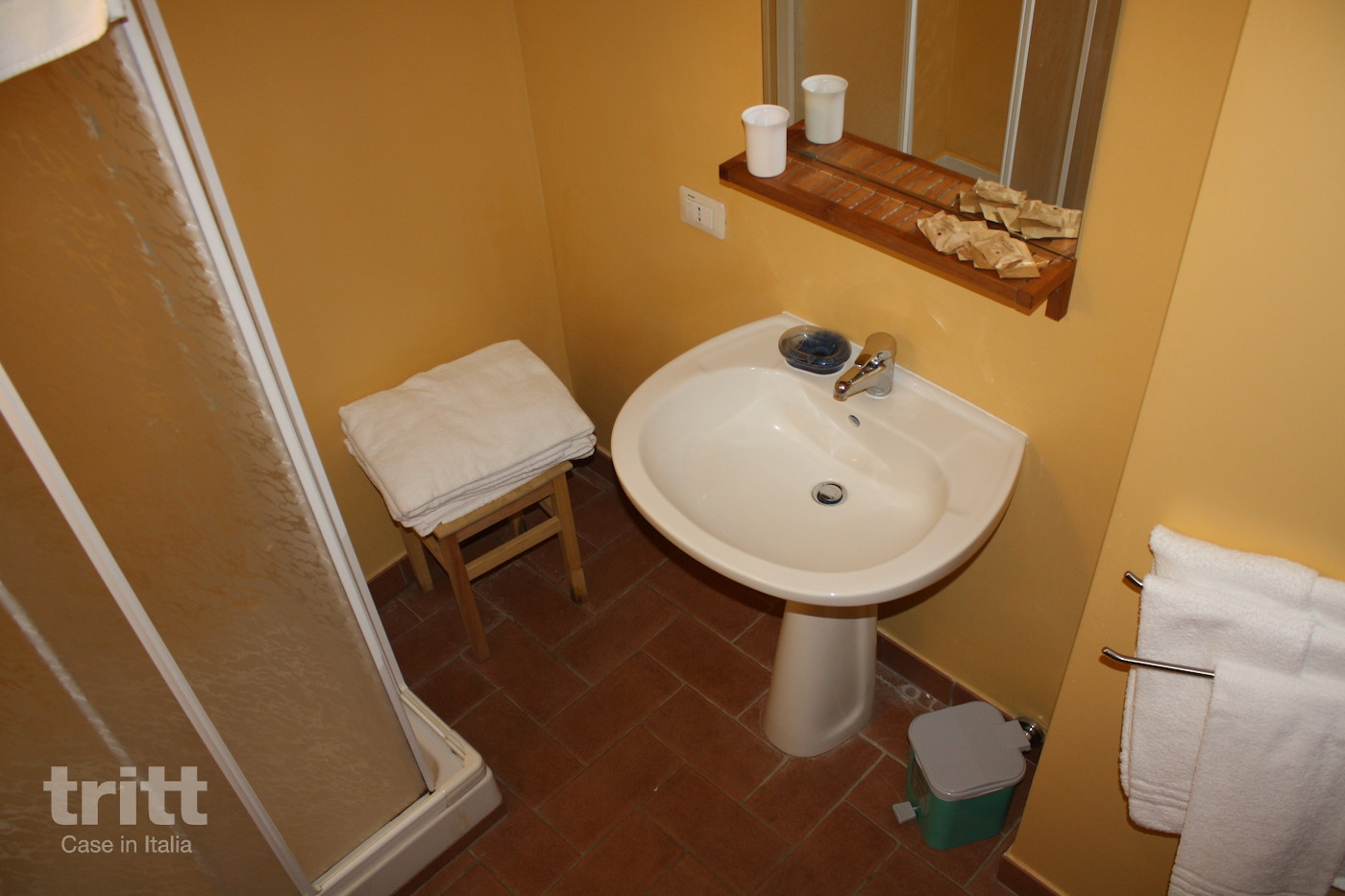 Die 5-Personen-Wohnung verfügt über einen Wohnbereich mit Küche, ausgestattet mit einem 4-Platten-Herd, einem Ofen und einem Kühlschrank mit Gefrierfach, einem Schlafzimmer mit Doppelbett, einem Schlafzimmer mit zwei Einzelbetten sowie einem Badezimmer mit Dusche und Toilette. Diese Wohnung hat eine Terrasse. Es gibt einen Gemüse- und Kräutergarten, den du kostenlos nutzen kannst (Ernte je nach Jahreszeit, natürlich). Außerdem können Sie Gemüse, Tomatensoosse, Olivenöl, Wein und Grappa aus Ihrem eigenen 'Garten' kaufen. Tagsüber kann man den Tennisplatz/Fußballplatz kostenlos nutzen, abends gibt es wegen der Beleuchtung einen Zuschlag von 10,00 € pro Stunde. Ein zusätzliches 5. Bett ist im Schlafzimmer mit Doppelbett möglich, es fällt eine zusätzliche Gebühr an.