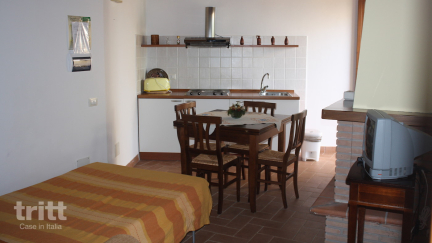 Die 6-Personen-Wohnung besteht aus zwei zusammenhängenden Wohnungen, sie haben eine Innentür. Die erste Wohnung verfügt über ein Doppelsofa mit Küche, ausgestattet mit einem 4-Kocher-Herd, einem Ofen und einem Kühlschrank mit Gefrierfach sowie einem Badezimmer mit Bad. Die zweite Wohnung verfügt über einen Wohnbereich mit Doppelsofa, eine praktische Küche mit einem 4-Kocher-Herd, Ofen und Gefrierschrank, ein Schlafzimmer mit Doppelbett sowie ein Badezimmer mit Dusche und Toilette. In der Wohnung gibt es eine Terrasse. Es gibt einen Gemüse- und Kräutergarten, den du kostenlos nutzen kannst (Ernte je nach Jahreszeit, natürlich). Außerdem können Sie Gemüse, Tomatensoosse, Olivenöl, Wein und Grappa aus Ihrem eigenen 'Garten' kaufen. Tagsüber kann man den Tennisplatz/Fußballplatz kostenlos nutzen, abends gibt es wegen der Beleuchtung einen Zuschlag von 10,00 € pro Stunde. Für die 5. und 6. Person wird ein Zuschlag erhoben.