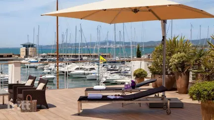 • Luxuswohnung mit großzügiger Terrasse und Blick auf den Yachthafen und das Meer