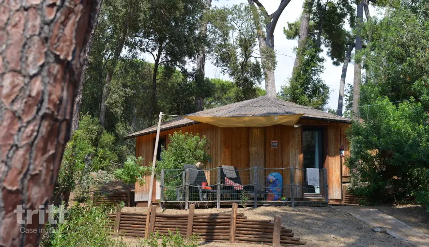 -Die modernen Holzchalets erstrecken sich in einem Kiefernwald auf einem 36 Hektar großen Grundstück. Der Park ist autofrei und nachhaltig gestaltet. Autos werden am Eingang geparkt, danach fährt ein Zug durch den Park. Die Chalets werden aus unbehandeltem Holz gebaut und die Abfalltrennung wird aktiv gefördert. Chalet für bis zu 5 Personen, darunter ein Kind bis zu 2 Jahren. Wohnzimmer mit Kochnische (Induktionskof), Sofa für 2 Personen, Doppelzimmer, Möglichkeit für ein Babybett. Badezimmer mit Dusche, Waschbecken, Toilette, Bidet und Föhn. Draußen gibt es eine Terrasse mit Gartenmöbeln. Das Chalet ist mit Satellitenfernsehen, Klimaanlage/Heizung, WLAN und einem Safe ausgestattet. Der private Strand liegt direkt am Park und ist nur für Gäste zugänglich. Hier kann man Sonnenbänken und Sonnenschirme mieten und das Meer genießen. Außerdem gibt es zwei Schwimmbecken: ein großes zentrales Becken von 375 m² mit unterschiedlichen Tiefen und ein Kinderbecken mit 210 m². Am Pool gibt es vier Whirlpools und eine Poolbar für ein italienisches Frühstück oder ein erfrischendes Getränk. Es gibt auch eine Strandbar am Strand, perfekt für den Sonnenuntergang. Badekappen sind nicht verpflichtend. Es gibt viel zu tun: Fahrradverleih, Aerobic, Aquagym, Volleyball, Beachvolleyball, Tennis, Mehrzweck-Fußballfeld, Windsurfen, Paddleboarding, Tretboote, Kanus und Katamarane. Für Kinder gibt es Clubs von 3 bis 16 Jahren mit einem täglichen Programm, das sich auf Spaß und Nachhaltigkeit konzentriert. Das Gelände verfügt über mehrere Spielplätze mit Schaukeln, Rutschen, Tischtennis und Hüpfburgen. Abends gibt es Shows und Unterhaltung. Sportanlagen sind enthalten. Sie können zwischen einer Pizzeria (ebenfalls glutenfrei), einem Buffetrestaurant oder einem à-la-carte-Restaurant am Strand wählen. Im Supermarkt auf dem Gelände kann man selbst Lebensmittel kaufen. Alle Käufe erfolgen mit einem Armband, das mit Ihrer Kreditkarte verknüpft ist, und Sie können Ihre Ausgaben über eine App verfolgen.