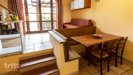 Diese Wohnung mit Schlafboden befindet sich im Erdgeschoss und strahlt den warmen Stil der Toskana aus. Im Inneren finden Sie ein gemütliches Wohnzimmer mit Küchenecke und einen bequemen Schlafbereich auf der Zwischenebene, ergänzt durch ein zusätzliches Bett im Erdgeschoss. Das Badezimmer ist praktisch angelegt und draußen hat man eine Terrasse mit Gartenmöbeln, von der aus man einen Blick auf das umliegende Grün hat. Als Gast können Sie auch die Einrichtungen eines nahegelegenen Campingplatzes nutzen, darunter ein großes Schwimmbad und ein Restaurant.