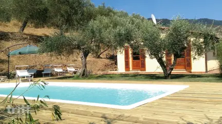 Diese einstöckige Villa ist warm und ordentlich im toskanischen Stil eingerichtet und bietet Platz für 6 Personen. Das Wohnzimmer mit Kamin und Essbereich bildet das Herz des Hauses und ist mit der offenen Küche verbunden, die mit einem 4-Kocher-Kochfeld, einer Filterkaffeemaschine, einem Kühlschrank mit Gefrierfach, Ofen und Geschirrspüler ausgestattet ist. Die drei Schlafzimmer haben jeweils ein eigenes Badezimmer, das Komfort und Privatsphäre gewährleistet. Durch französische Türen kann man direkt auf die Terrasse gehen, wo eine überdachte Veranda und ein großer Steingrill zu langen Abenden draußen einladen. Der private Garten rund um das Haus bietet ein eingezäuntes Schwimmbecken mit Terrassen, Sonnenliege und einen wunderschönen Blick über das Tal.