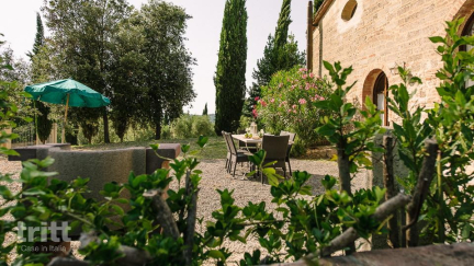 Mitten in der malerischen toskanischen Landschaft, umgeben von Zypressen, Olivenbäumen und Kiefern, liegt dieses charaktervolle ehemalige Landhaus. Der Komplex strahlt authentischen toskanischen Charme aus und bietet Raum und Ruhe für einen entspannten Aufenthalt. Das große Schwimmbad ist das Herzstück des Geländes und lädt dazu ein, Sonne und Natur zu genießen.