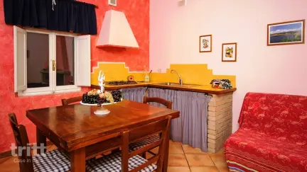 Das ehemalige Landhaus besteht aus 6 Wohnungen und befindet sich in einem großen, parkähnlichen Garten. Die Wohnung im Erdgeschoss verfügt über ein gemütliches Wohnzimmer mit Kochnische, ein Schlafzimmer und ein Badezimmer, ergänzt durch Klimaanlage und einen Außensitzbereich. Im Garten finden Sie das wunderschön gelegene Schwimmbad mit Kinderbereich, umgeben von Olivenbäumen und Sonnenbereichen. Pferde und kleine Tiere streifen auf dem Anwesen herum, und in der Saison können Sie Ihr Obst selbst pflücken oder frische Eier genießen. Auf Anfrage wird das Frühstück im zentralen Raum mit eigenem Olivenöl, Wein und hausgemachten Produkten serviert.