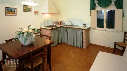 Die Residenz befindet sich in einem ehemaligen Landhaus mit einem parkähnlichen Garten und einem Swimmingpool, umgeben von Olivenbäumen. Die Wohnung im Erdgeschoss verfügt über ein helles Wohnzimmer mit Kochnische, ein Doppelzimmer und ein zweites Schlafzimmer mit 2 Schlafzimmern. Draußen können Sie Ihren eigenen Platz auf der Veranda genießen, während die ländliche Atmosphäre durch die Tiere auf dem Anwesen und die Möglichkeit, frisches Obst zu pflücken oder ein Frühstück mit lokalen Produkten zu buchen, bereichert wird.
