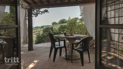 Diese geräumige und attraktive Wohnung liegt zwischen Olivenbäumen im ruhigen Val di Cecina. Hier genießen Sie einen wunderschönen Blick auf die toskanischen Hügel und das Tyrrhenische Meer, während das Salzwasser-Schwimmbad mit Hydromassage vor Ort zum Entspannen einlädt. Das typische toskanische Dekor mit Naturstein, Holzbalken und Terrakottaböden verleiht dem Ganzen eine warme und authentische Atmosphäre. Guardistallo und Montescudaio sind nur wenige Autominuten entfernt, und der Strand von Cecina Mare ist in etwa fünfzehn Minuten erreichbar.
