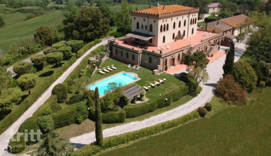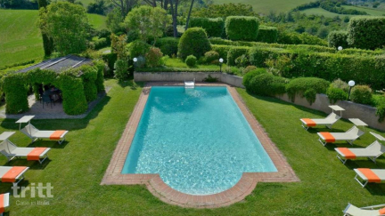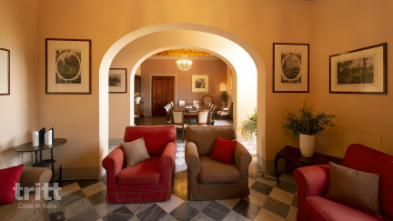 Diese geräumige Villa bietet Platz für 16 Personen und ist warm und luxuriös im traditionellen toskanischen Stil eingerichtet. Im Inneren finden Sie großzügige Wohnbereiche mit Kaminen, ein separates Esszimmer und eine voll ausgestattete Küchen-Diner-Küche, ideal für lange Abendessen mit Familie oder Freunden. Die Villa verfügt über 8 komfortable Schlafzimmer, jedes mit eigenem Badezimmer, verteilt auf das Erdgeschoss und das erste Stockwerk. Angrenzend an die Hauptvilla befindet sich ein attraktiver Anbau mit zusätzlichem Schlafbereich, Badezimmer und Kochnische. Rund um die Villa befindet sich eine große Terrasse mit Blick auf den Garten und das Becken, außerdem gibt es mehrere Möglichkeiten zum Entspannen am Pool. Ein besonderes Detail ist die kleine private Kapelle auf dem Grundstück.