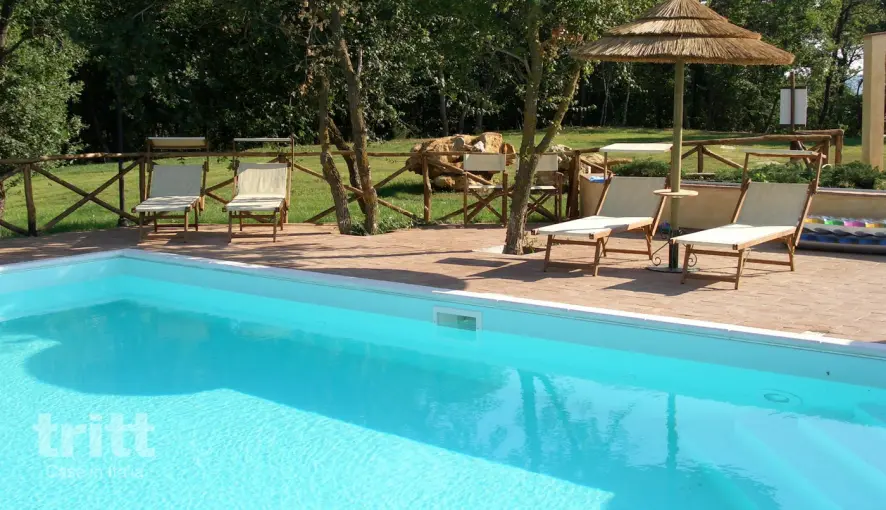 Der Park ist im traditionellen toskanischen Stil gebaut, mit Natursteinwänden, Balkendecken und Terrakottaböden. Die Wohnung befindet sich im Erdgeschoss und bietet Platz für 4 Personen. Im Inneren finden Sie einen Wohn- und Essbereich mit einem Doppelsofa, Fernseher und einer Küchenecke, ausgestattet mit einem 4-Kocher-Kochfeld sowie einem Kühlschrank mit Gefrierfach. Mikrowellenofen, Wasserkocher und Moka-Kaffeemaschine. Das Schlafzimmer ist mit einem Doppelbett eingerichtet und das Badezimmer verfügt über Dusche, Waschbecken, Toilette und Bidet. Draußen hat man eine private Terrasse mit Gartenmöbeln. Das große Schwimmbecken von ca. 200 m² ist mit Sonnenliege und Sonnenschirmen ausgestattet, und für die Kleinen gibt es ein separates Kinderbecken mit angrenzendem Spielfeld mit Schaukel, Rutsche und Tischtennis. Es gibt außerdem einen gemeinsamen Grill und eine Waschmaschine. Die Zufahrtsstraße ist eine leicht ansteigende, unbefestigte Straße; Praktisch, das im Voraus zu berücksichtigen. Ein Auto ist für den täglichen Einkauf notwendig.