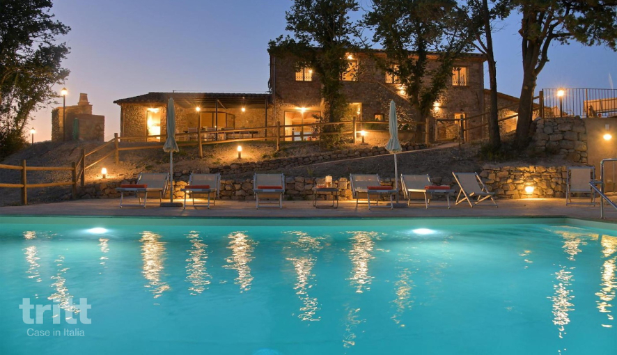 Diese geräumige Villa erstreckt sich über 2 Stockwerke und bietet Platz für 12 Personen. Im Inneren finden Sie helle Wohnbereiche mit mehreren Wohnzimmern, eine große Küche, einen Speisesaal und einen langen Esstisch, an dem sich alle versammeln. Die sechs Schlafzimmer verfügen jeweils über ein eigenes Badezimmer, was Komfort und Privatsphäre gewährleistet. Dank der Klimaanlage in allen Zimmern ist es auch angenehm, im Sommer hier zu bleiben. Draußen passt die Villa perfekt ins toskanische Leben, mit einer Pergola für lange Abendessen, einem Grill und verschiedenen Entspannungsmöglichkeiten. Das untere Becken ist vollständig eingezäunt und bietet wunderschöne Ausblicke auf die Umgebung, während man neben dem Pool auch ein kleines Fitnessstudio für diejenigen findet, die aktiv bleiben möchten.