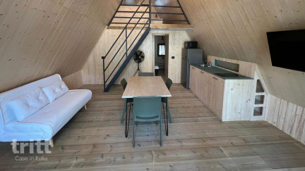 Dieses Glampingzelt ist für fünf Personen geeignet und bietet eine feine Kombination aus Leben im Freien und modernen Annehmlichkeiten. Im Inneren finden Sie ein Wohnzimmer mit einem Einzelschlafsofa, einem TV und einer Küchenzeile mit Mikrowelle und Kühlschrank mit Gefrierfach. Im Zwischengeschoss befindet sich ein Schlafzimmer mit Doppelbett, während sich im Erdgeschoss ein Schlafzimmer mit zwei Einzelbetten befindet. Das Badezimmer verfügt über eine Dusche, WC, Bidet und Waschbecken. Draußen gibt es eine Veranda mit Tisch und Stühlen, auf der Sie morgens die erste Sonne genießen oder abends gemeinsam unter dem Sternenhimmel speisen können. Das Zelt ist klimatisiert und es stehen insgesamt zwei Zelte dieses Typs zur Verfügung. An- und Abreisen sind in der Hochsaison auch sonntags möglich. Das Herzstück des Parks bildet ein großes, organisch geformtes Schwimmbad (ca. 300 m², unbeheizt) mit flachem Bereich für Kinder und Hydromassage. Die Atmosphäre ist freundlich und kinderfreundlich: Es gibt einen Platz mit Fußballtoren, Spielgeräten und einer Tischtennisplatte. An der Bar können Sie ein Eis oder einen leichten Snack genießen. Seine Lage auf dem Hügel bietet einen herrlichen Blick über die toskanische Landschaft und eine angenehme Brise an heißen Sommertagen. Die Zufahrtsstraße ist ländlich und leicht bergauf – ein kleiner Preis für eine so ruhige Lage.