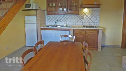 Diese Zweizimmerwohnung mit offenem Schlafboden befindet sich im ersten Stock und bietet bequem Platz für sechs Personen. Der Wohnbereich verfügt über einen Kamin, ein Sofa und eine Küchenzeile mit Herd, Mikrowelle und Kaffeemaschine. Das Schlafzimmer verfügt über ein Doppelbett und ein Einzelbett, während das offene Loft über ein Doppelbett und ein Einzelbett verfügt. Das Badezimmer verfügt über eine Dusche, WC und Waschbecken. Am Ende der Treppe befindet sich eine gemütliche Pergola mit Tisch, Stühlen und Grill, gefolgt von einem privaten Garten mit Liegestühlen. Die Einrichtung ist einfach, aber mit dem typisch toskanischen Charme: Holzbalken, Terrakottaböden und viel Licht. In der Mitte des Anwesens befindet sich ein großes, organisch geformtes Schwimmbad (ca. 300 m², unbeheizt) mit flachem Bereich für Kinder und Hydromassage, Badekappe nicht obligatorisch. Rund um den Pool befindet sich eine großzügige Sonnenterrasse mit Liegestühlen und Sonnenschirmen, und für die Kinder gibt es einen großen Spielbereich mit einem Fußballplatz, einer Tischtennisplatte und einigen Spielgeräten. Eis und leichte Snacks sind an der Bar erhältlich. Die Lage auf dem Hügel sorgt nicht nur für kühle Abende und frische Luft, sondern auch für einen Panoramablick auf die toskanische Natur. Die Apartments sind einfach eingerichtet, aber klimatisiert, genau das, was Sie für einen erholsamen Familienurlaub brauchen.