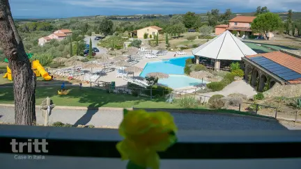 Die Residenz Vista Mare besteht aus 45 Wohnungen, die im warmen Landhausstil mit Terrakottaböden und Holzbalkendecken eingerichtet sind. Dieses Apartment für 6 Personen befindet sich im Erdgeschoss oder im ersten Stock und verfügt über eine überdachte Terrasse oder einen Balkon mit Blick auf die toskanische Landschaft. Im Inneren finden Sie ein helles Wohnzimmer mit Essbereich, Küchenzeile und Doppelschlafcouch, ein Schlafzimmer mit Doppelbett, ein zweites Schlafzimmer mit zwei Einzelbetten, ein Badezimmer mit Dusche, WC und Bidet und ein zusätzlicher separater Toilettenraum. Ideal für Familien oder Paare, die zusammen reisen. Der Komplex verfügt über zwei Swimmingpools (unbeheizt), von denen einer über ein Kinderbecken verfügt, umgeben von einer Sonnenterrasse mit Liegestühlen und Sonnenschirmen. Am Pool befindet sich ein gemütliches Restaurant und eine Bar, in der Sie Kaffee, Getränke oder einfache toskanische Gerichte genießen können. Abends ist der Pool attraktiv beleuchtet und eignet sich perfekt für ein entspannendes Bad mit Blick auf die untergehende Sonne. Für Kinder gibt es viel Unterhaltung mit einer Tischtennisplatte, Spielgeräten und einem kleinen Teich mit Fischen und Fröschen an der Rezeption.