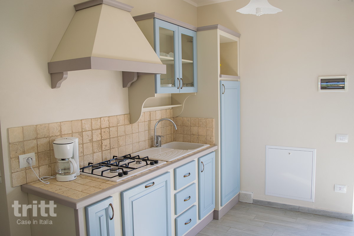Die Residenz Vista Mare verfügt über 45 Wohnungen in verschiedenen Größen, die im warmen toskanischen Stil mit Holzbalken, Terrakottaböden und attraktiven Farben eingerichtet sind. Diese 6-Personen-Wohnung befindet sich im Erdgeschoss oder im ersten Stock und verfügt über eine überdachte Terrasse oder einen Balkon mit Blick auf die Hügel.