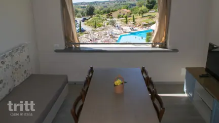 Die Residenz Vista Mare besteht aus 45 Wohnungen, die im warmen Landhausstil mit Terrakottaböden und Holzbalkendecken eingerichtet sind. Dieses Apartment für 6 Personen befindet sich im Erdgeschoss oder im ersten Stock und verfügt über eine überdachte Terrasse oder einen Balkon mit Blick auf die toskanische Landschaft. Im Inneren finden Sie ein helles Wohnzimmer mit Essbereich, Küchenzeile und Doppelschlafcouch, ein Schlafzimmer mit Doppelbett, ein zweites Schlafzimmer mit zwei Einzelbetten, ein Badezimmer mit Dusche, WC und Bidet und ein zusätzlicher separater Toilettenraum. Ideal für Familien oder Paare, die zusammen reisen. Der Komplex verfügt über zwei Swimmingpools (unbeheizt), von denen einer über ein Kinderbecken verfügt, umgeben von einer Sonnenterrasse mit Liegestühlen und Sonnenschirmen. Am Pool befindet sich ein gemütliches Restaurant und eine Bar, in der Sie Kaffee, Getränke oder einfache toskanische Gerichte genießen können. Abends ist der Pool attraktiv beleuchtet und eignet sich perfekt für ein entspannendes Bad mit Blick auf die untergehende Sonne. Für Kinder gibt es viel Unterhaltung mit einer Tischtennisplatte, Spielgeräten und einem kleinen Teich mit Fischen und Fröschen an der Rezeption.