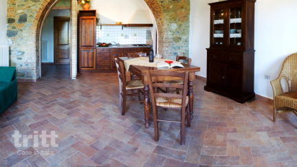 Das Landhaus stammt aus dem 18. Jahrhundert und war einst Teil einer alten Fattoria. Wo früher zwei Bauernfamilien lebten, finden Sie jetzt 12 komfortable Wohnungen im warmen toskanischen Stil. Die Wohnung im Erdgeschoss verfügt über ein geräumiges Wohnzimmer mit Doppelsofa, Küche, ein Doppelzimmer und ein Badezimmer mit Dusche. Draußen gibt es einen privaten Sitzbereich auf der großen gemeinsamen Terrasse. Auf dem Grundstück gibt es ein großes Schwimmbecken von 18×11 m mit einem separaten Kinderbecken, umgeben von einer großzügigen Terrasse mit Sonnenliege und Sonnenschirmen. Es gibt einen Indoor-Spielplatz für Kinder, und neben dem Landhaus befindet sich ein 1,5 Hektar großer Wald mit Spazier- und Joggingrouten. Die gemeinsame, schattige Terrasse bietet reichlich Platz zum Essen im Freien oder zum Entspannen, und es stehen drei gemeinsame Grillplätze zur Verfügung. In der Hochsaison gibt es wöchentlich einen Abend mit Musik und kleinen Snacks. Es gibt auch einen Brotservice, und in Santa Luce (2 km) finden Sie zwei Bäckereien.