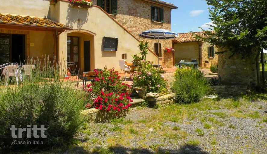 Das Ferienhaus besteht aus zwei Stockwerken und bietet ein helles Wohnzimmer mit Essbereich und Küche im Erdgeschoss sowie zwei Schlafzimmer mit eigenen Badezimmern. Im Erdgeschoss gibt es zwei weitere komfortable Schlafzimmer, jedes mit eigenem Badezimmer. Draußen genießen Sie einen privaten Ort mit Tisch und Stühlen, umgeben von der grünen toskanischen Landschaft. Auf dem Anwesen gibt es zusätzliche Einrichtungen wie eine Reitschule, ein Restaurant und verschiedene Aktivitäten für Jung und Alt, die den Aufenthalt sowohl entspannt als auch lebendig wirken lassen.