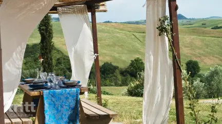 Diese charmante Residenz liegt idyllisch auf einem Hügel und ist über eine gepflasterte Straße mit Zypressen erreichbar, die sofort eine entspannte Urlaubsatmosphäre schafft. Die Aussicht ist wirklich wunderschön und man kann auch Volterra wunderschön sehen. Der freundliche Besitzer sorgt für einen herzlichen Empfang und eine entspannte Atmosphäre, sodass man sich hier wie zu Hause fühlt.