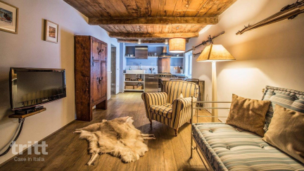 Die ehemalige Villa aus dem 17. Jahrhundert wurde mit großer Sorgfalt in ein kleines Wohnhaus mit stilvollen Apartments umgewandelt. Naturmaterialien wie Stein und Holz sorgen für eine warme Atmosphäre, während moderne Annehmlichkeiten Komfort garantieren. Diese Wohnung im Erdgeschoss ist intim und romantisch, mit einer voll ausgestatteten Küche, einem gemütlichen Sitzbereich mit Herd und einem Schlafzimmer mit Himmelbett. Draußen wartet ein grüner Garten mit einem beheizten Schwimmbecken mit Jetstream, einem Grill und einem Pizzaofen. Nach einem aktiven Tag in den Bergen ist dies ein schöner Ort zum Entspannen.